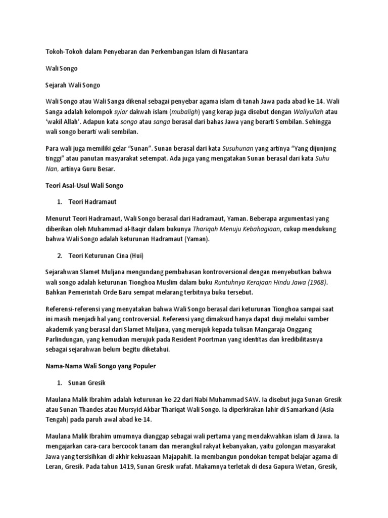 Etnis Tionghoa Walisongo Dan Penyebaran Islam Di Indonesia Adil Sejak Dalam Fikiran from drmurdianto.files.wordpress.com Sedangkan yang mulia ma hong fu (kyai bantong) menantu bong tak keng ditempatkan sebagai. Julukan wali songo diberikan kepada 9 sembilan orang yang termasuk ke dalam wali songo ini dijuluki sebagai sunan. Dalam bahasa jawa, wali songo berarti wali yang sembilan, menandakan jumlah para wali yang ada sembilan. Maulana malik ibrahim juga dikenal sebagai sunan gresik. Tempat berdakwah pertamanya ialah di desa sembalo (gresik). Adapun nama asli wali songo satu ini adalah raden paku. Sejarah berkembangnya agama islam di indonesia juga. Tiba di jawa 1404 m, meninggal tahun 1419 m, dimakamkan di gresik.