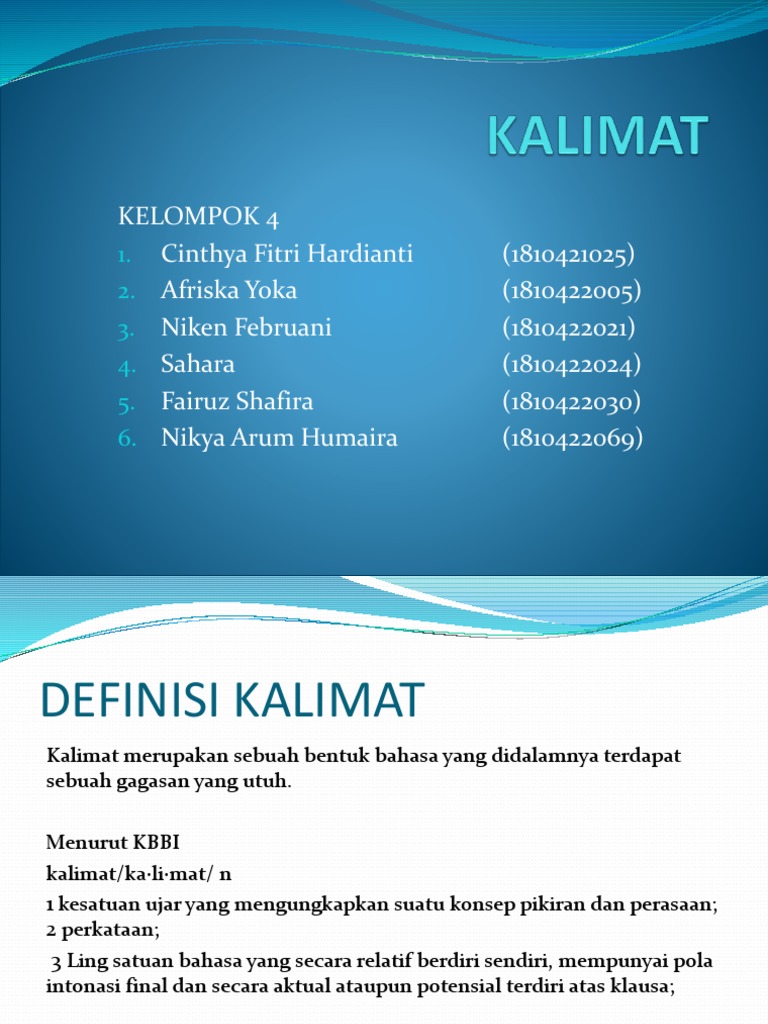 Tata Kalimat Danang Wahyu Utomo Danang Wudsn Dinus from slidetodoc.com Jikalau akronim yang terbentuk ialah kata nama khas, akronim itu dieja dengan huruf besar kesemuanya. Misalnya 'penyanyi' ialah orang yang 'bernyanyi' manakala 'biduan' bermaksud 'status' yang tinggi dalam profesionalisme seni. Selain itu, abdullah hassan (2006), menyatakan bahawa sinonim ialah dua perkataan atau lebih yang mempunyai makna sama dalam sesuatu bahasa. Jenis pengulangan ayat contoh kata yang sama saya. Perkataan itu adalah sebahagian daripada istilah perubatan dan biokimia. Keutuhan wacana terhasil apabila wujudnya susunan yang teratur dan berurutan dalam sesuatu wacana. Arti & pengertian integritas (kbbi) dengan sinonim / antonim / kata turunan. Our college has kitchen jacilities jor each suite on campus, and the kichen are used to great e xtent.